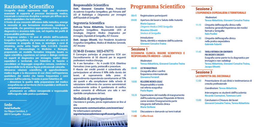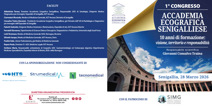 La informiamo che il prossimo corso dell’Accademia Ecografica Senigalliese si terrà giovedì 26 febbraio, dalle ore 15.00 alle 17.00.